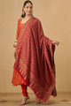 Maroon and grey, mustard floral woven design woollen shawl has a fringed border
