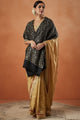 Black and grey floral woven design viscose rayon shawl has a solid border