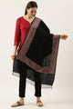 Black & beige Nalki embroidery shawl , has afringed border