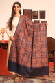 Navy blue and orange paisley embroidered woollen shawl has a solid border