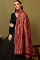 Maroon and gold-toned paisley woven design woollen shawl has a fringed border