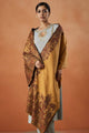 Mustard and maroon paisley woven design woollen shawl has a woven design border