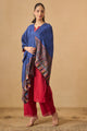 Navy blue & pink paisley woven design viscose rayon shawl has a solid border