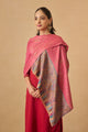 Pink paisley woven design viscose rayon shawl has a solid border