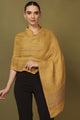 Mustard and gold-toned checked woven design woollen shawl has a fringed border