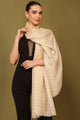 Beige and gold-toned striped woven design shawl, has a fringed border