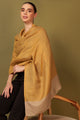 Mustard yellow & gold-toned striped woven design woollen reversible shawl, has a fringed border