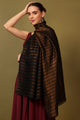 Black & gold-toned striped woven design woollen reversible shawl, has a fringed border