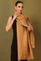 Mustard yellow & grey striped woven design woollen reversible shawl, has a fringed border