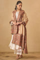 Beige and brown tribal woven design woollen shawl has a fringed border
