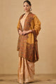Mustard and brown tribal woven design woollen shawl has a fringed border