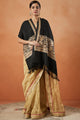 Black and gold-toned ethnic motifs embroidered viscose rayon shawl has a tasselled border