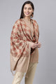 Beige and Maroon Embroidered knitted shawl has a Tasselled Border