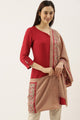 Dhiyona PA Women Beige & Red Embroidered Pure Wool Shawl