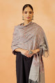 Grey and pink floral embroidered woollen shawl has a tasselled border