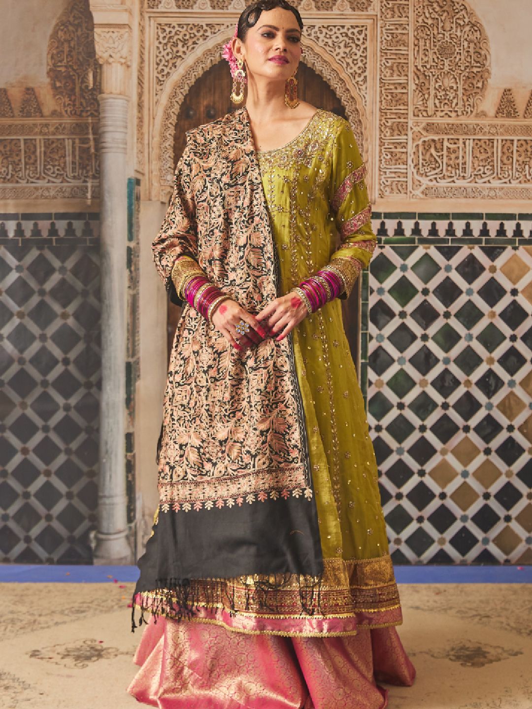 Gracefully drape the Pashmoda shawl over your shoulders, allowing its intricate patterns to shine. Pair it with formal wear for a touch of opulence, or wrap it loosely with casual attire for a fusion of tradition and modernity. The shawl's elegance elevates any outfit, making it a versatile fashion statement.