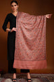 Pink and off white floral embroidered woollen shawl has a solid border
