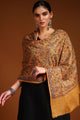 Mustard floral embroidered woollen shawl has a printed border