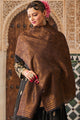 Copper and gold-toned floral woven design woollen shawl has a fringed border