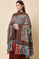 Grey Kalamkari Embroidered wool shawl, comes with fringed border
