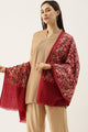 Maroon hand embroidery shawl with floral patterns