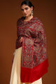 Maroon and white paisley embroidered woollen shawl has a solid border