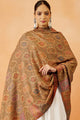 Beige and brown paisley woven design woollen shawl has a solid border
