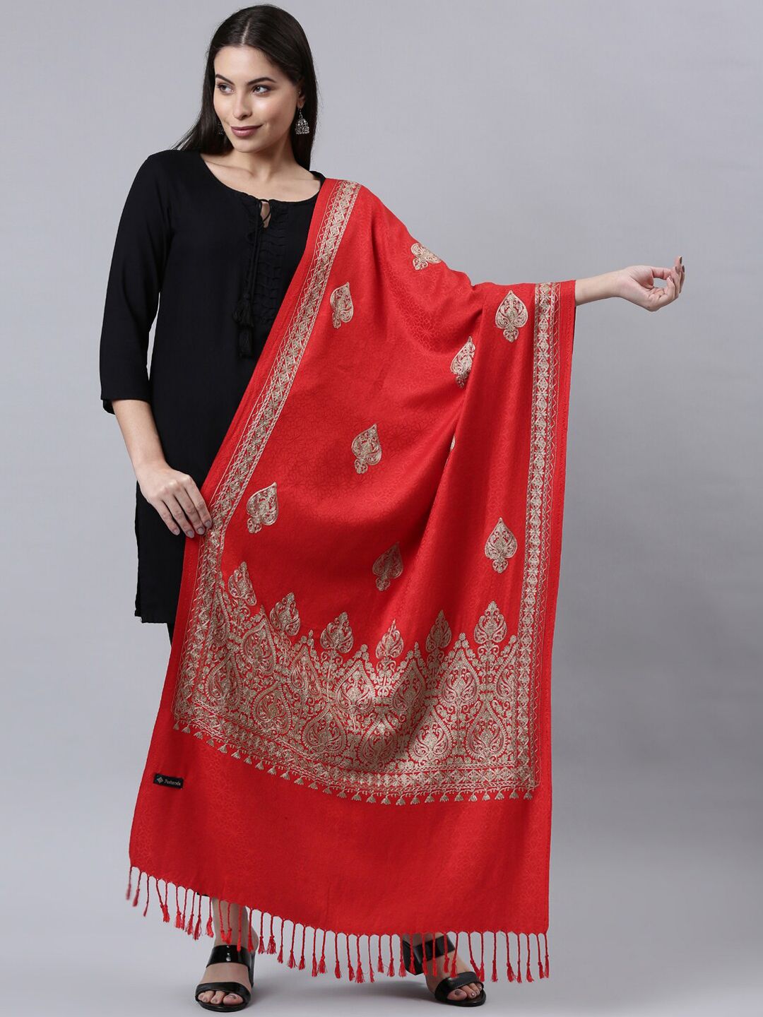 Dhiyona PA Women Red & Silver-Toned Embroidered Shawl
