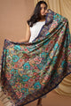 Dhiyona PA Women Teal Blue & Pink Kalamkari Pure Wool Shawl