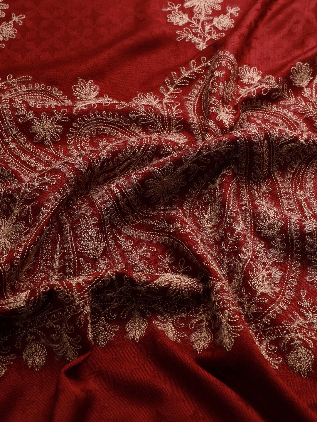 Wine Aari Embroidered Shawl for Women