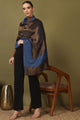 Blue and gold-toned solid woven design woollen shawl has a fringed border
