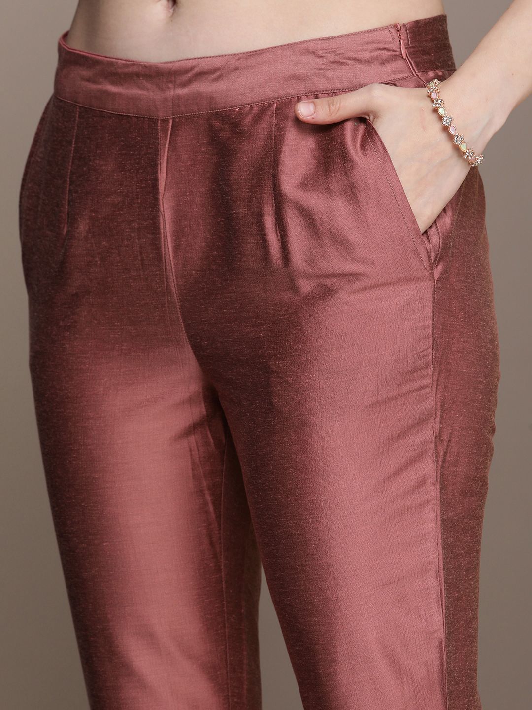 Dusty Pink embroidered Kurta with Trousers with dupatta