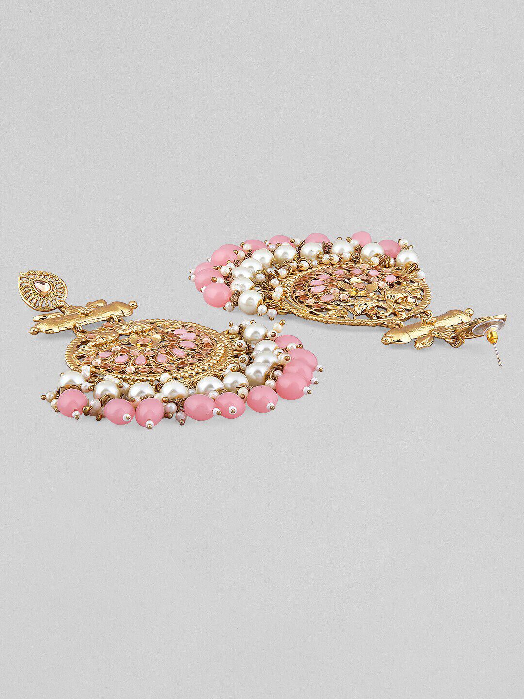 Dhiyona RJ 18K Antique Gold-Plated Big Chandbali Earrings with Pearl & Pink Bead Accents