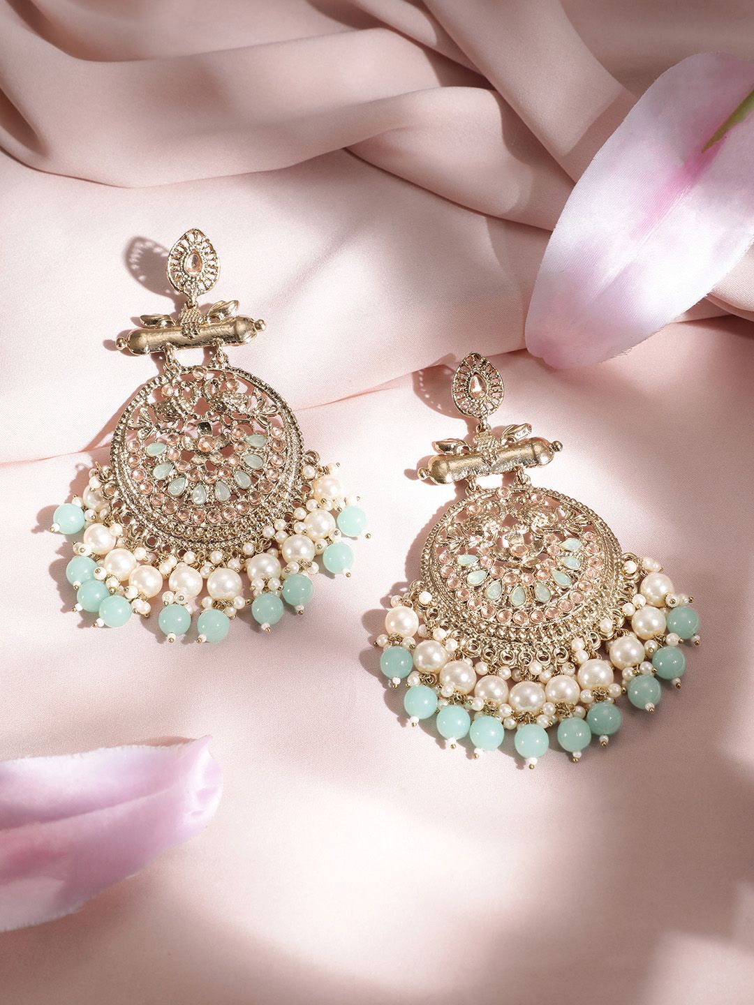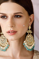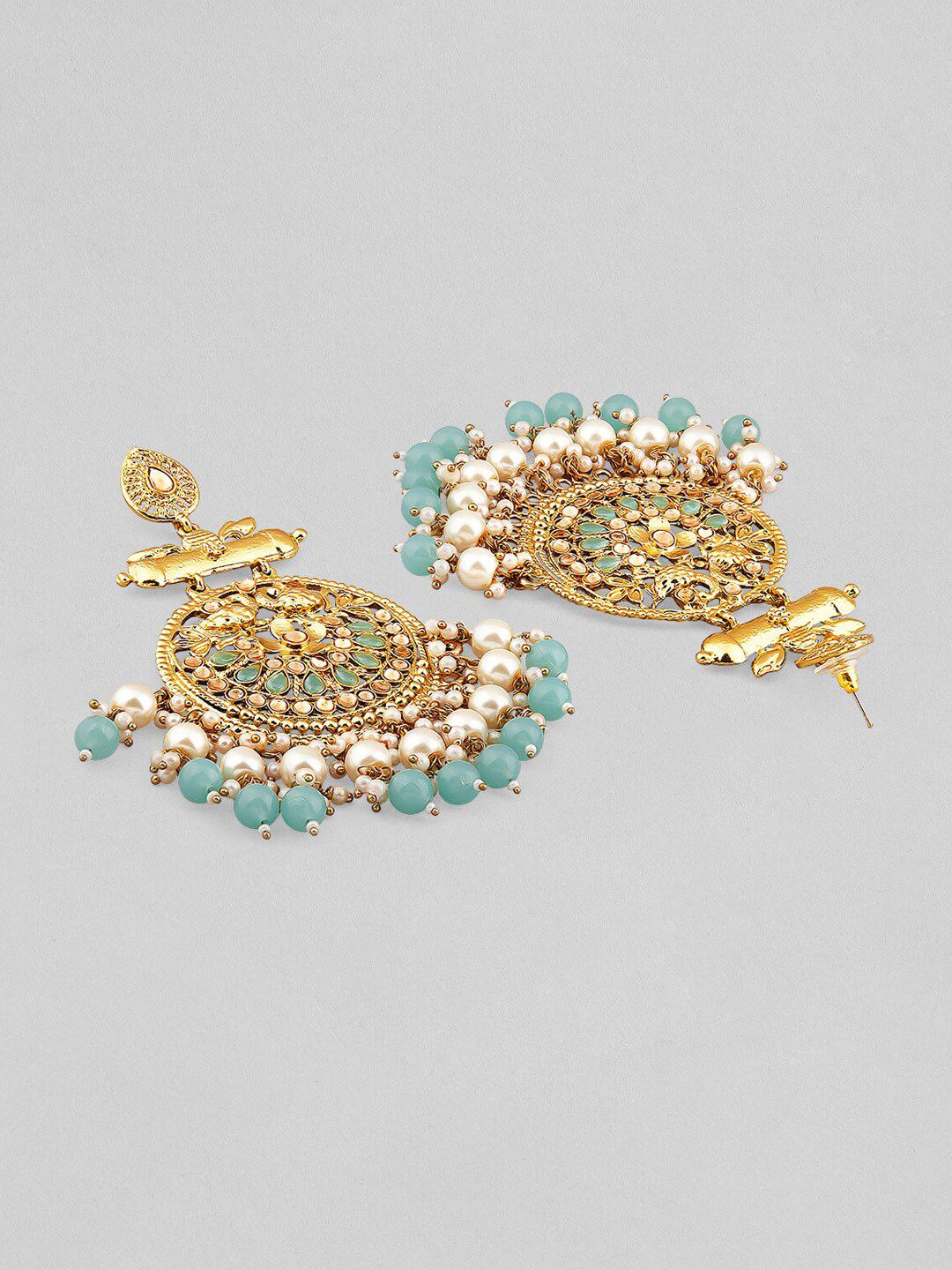 Dhiyona RJ Women's 18K Antique Gold-Plated Big Chandbali with Pearl & Turquoise Blue Bead Accents