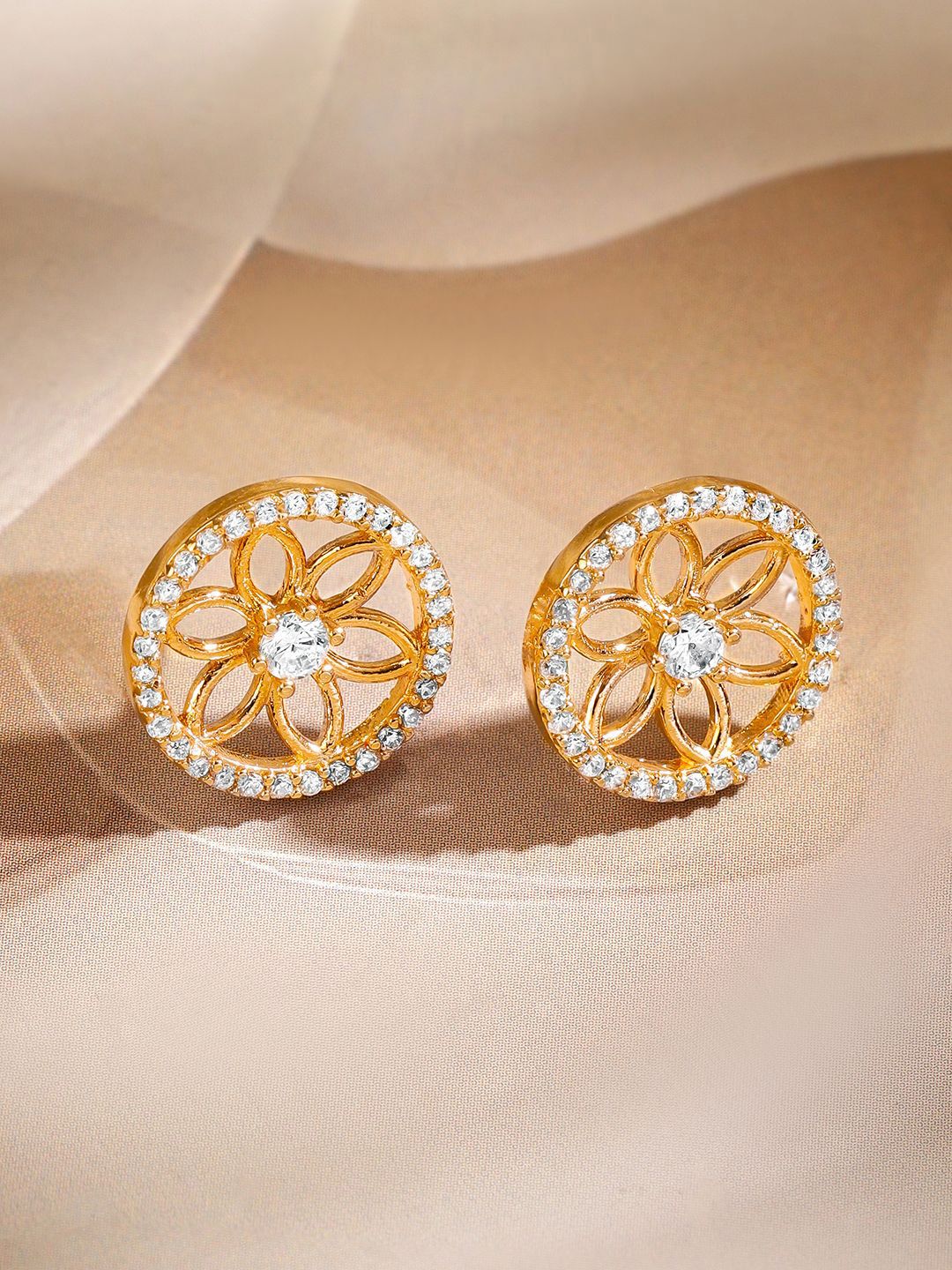 Dhiyona RJ 18K Gold-Plated Cubic Zirconia Studded Floral Pendant Black Beaded Mangalsutra Set