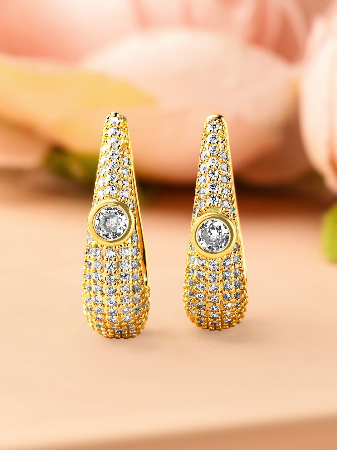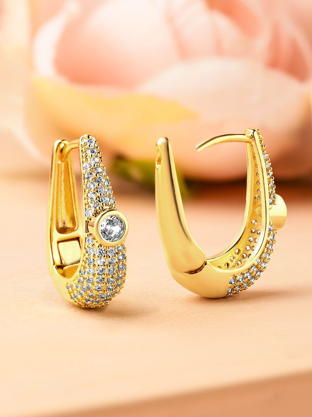 Dhiyona RJ 18K Gold-Plated Cubic Zirconia Studded Statement Mini Hoop Earrings