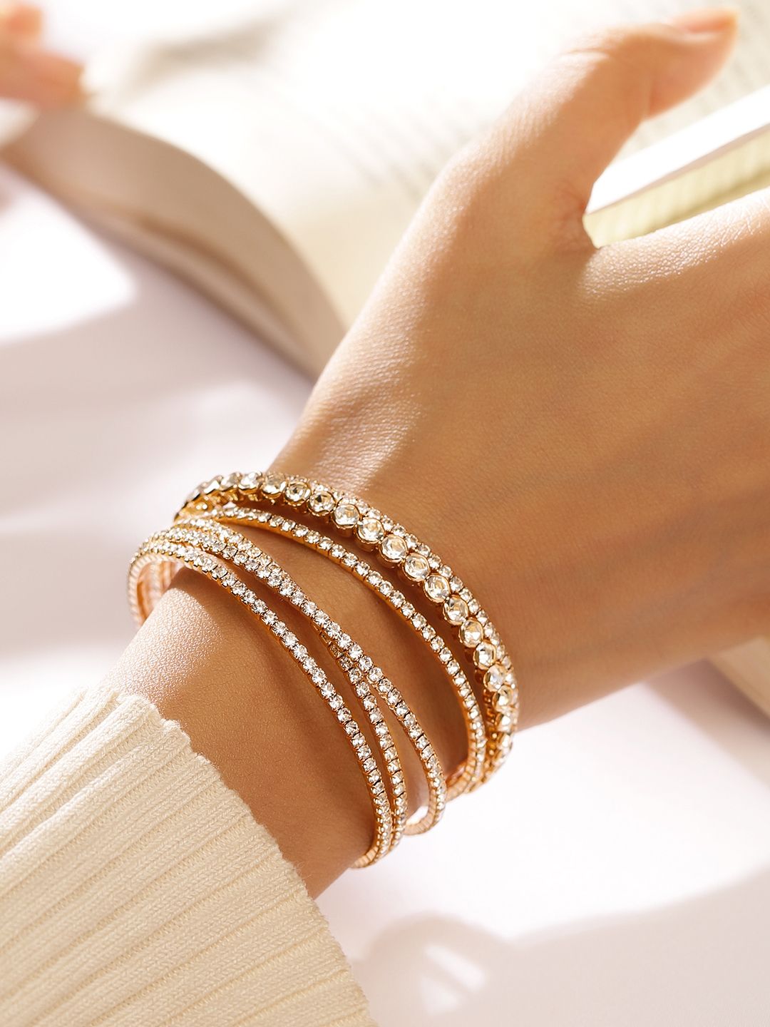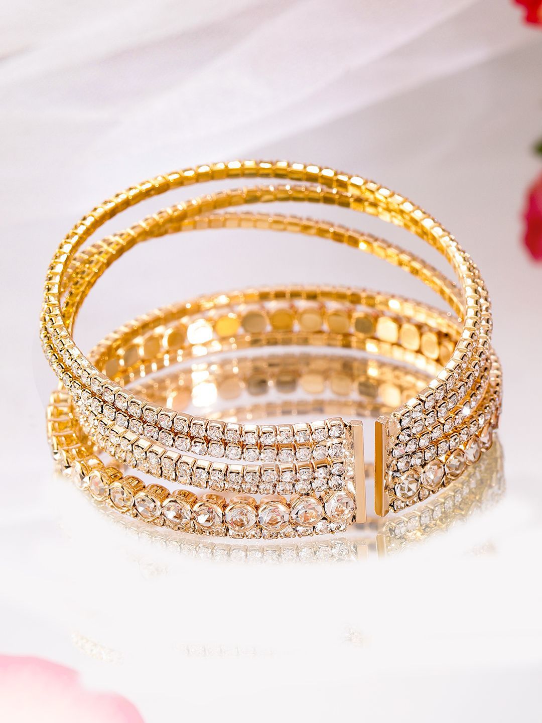 Dhiyona RJ Women's 18K Gold-Plated Cuff Bracelet with Sparkling AD & Cubic Zirconia Stones