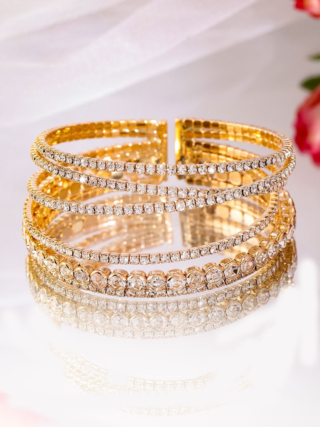 Dhiyona RJ 18K Gold-Plated Cuff Bracelet with Sparkling AD & Cubic Zirconia Stones