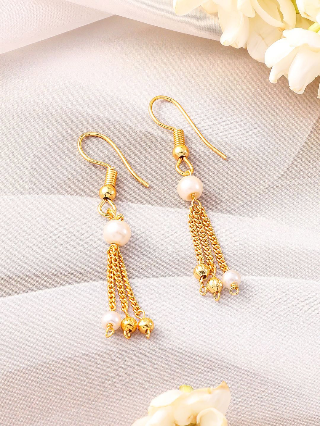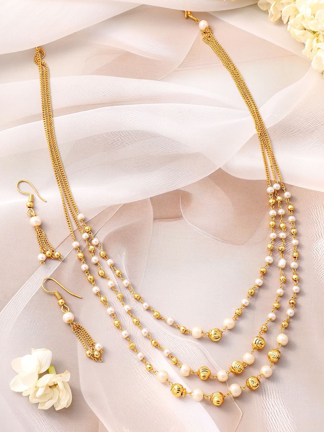 Dhiyona RJ 18K Gold-Plated Multilayer Pearl Beaded Necklace Set with Matching Earrings