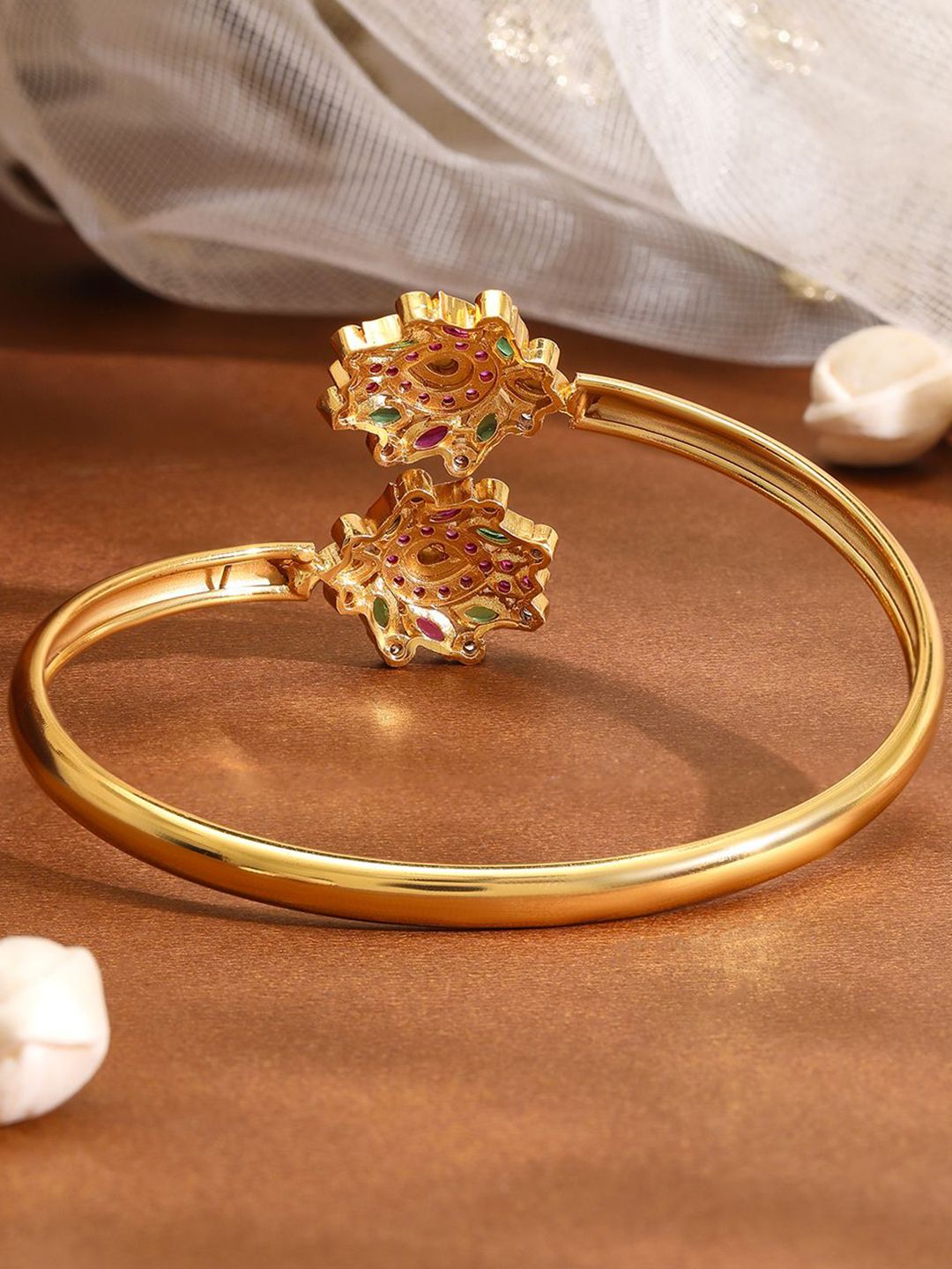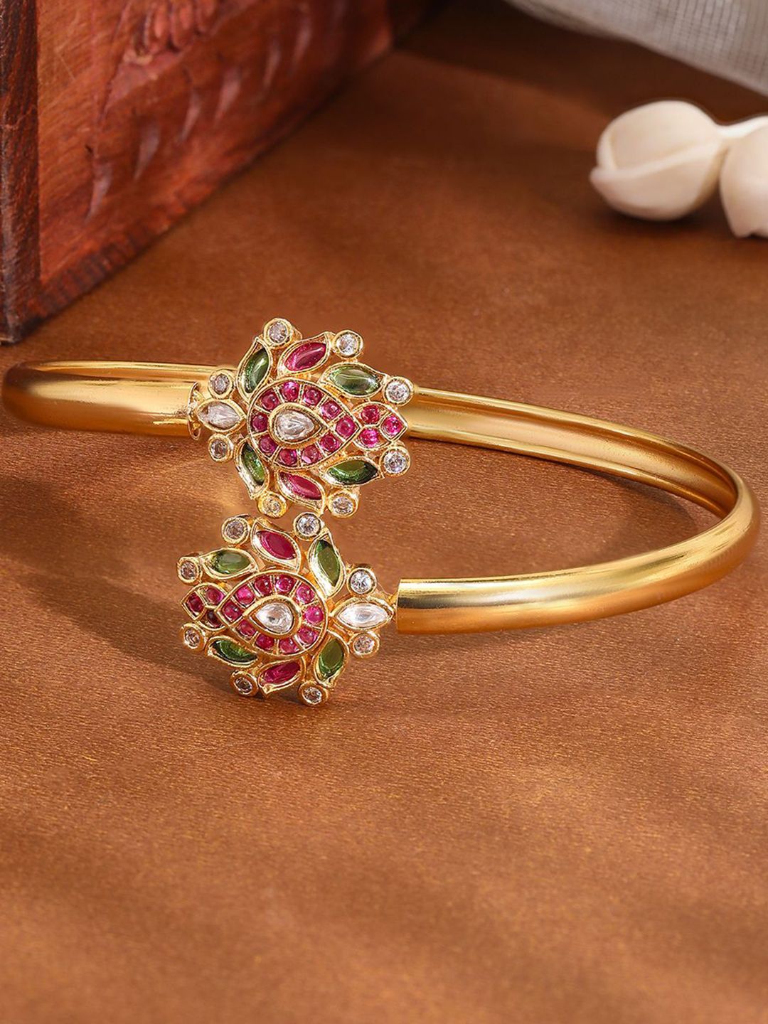 Dhiyona RJ 18K Gold-Plated Ruby Pink, Green & White Kundan Studded Openable Bangle
