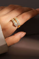 18K Gold-plated adjustable finger ring, has white cubic zirconia stone-studded and criss-cross shaped details