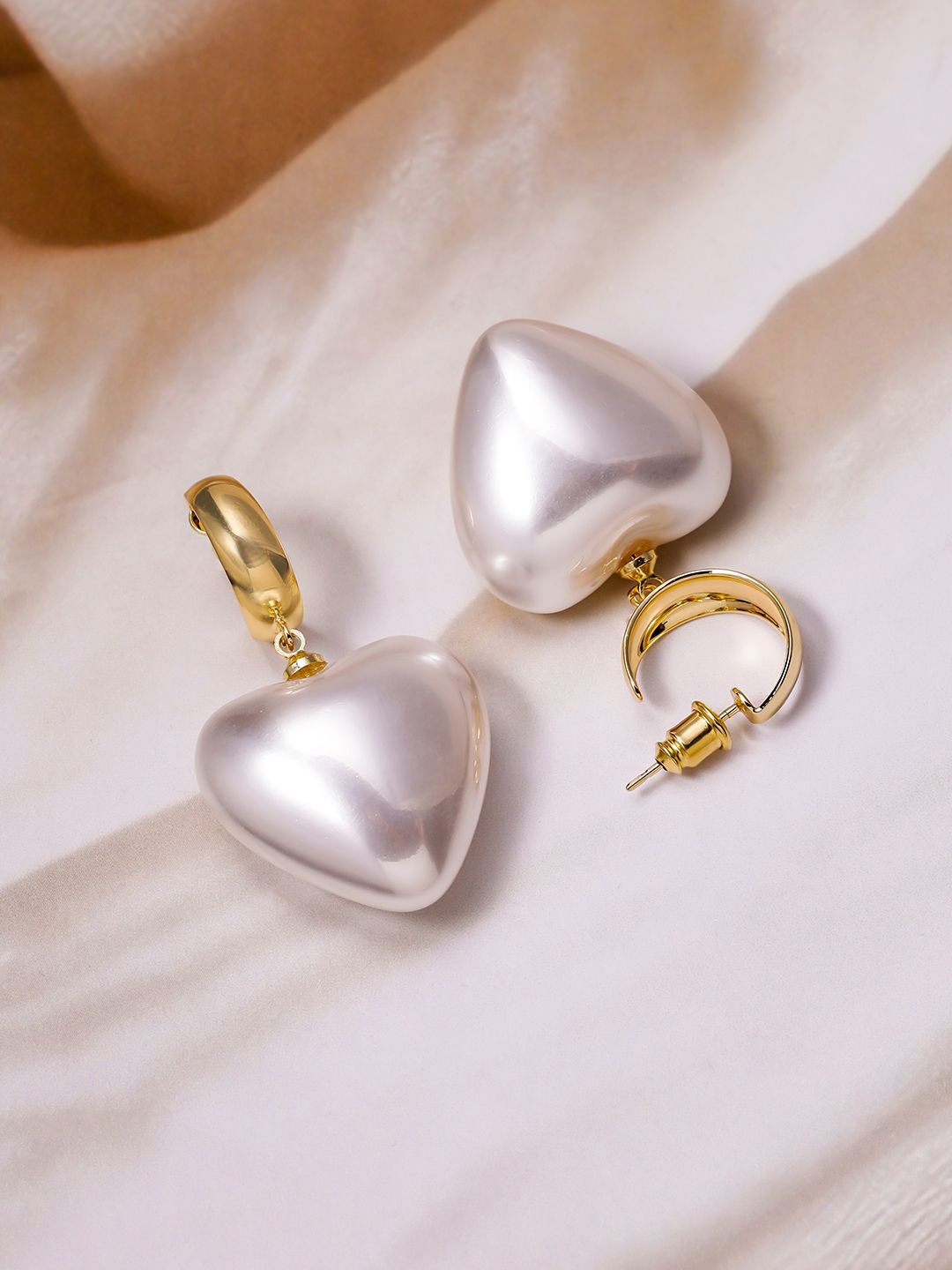 Dhiyona RJ 18K Gold Plated Shiny White Pearl Heart Drop Earrings