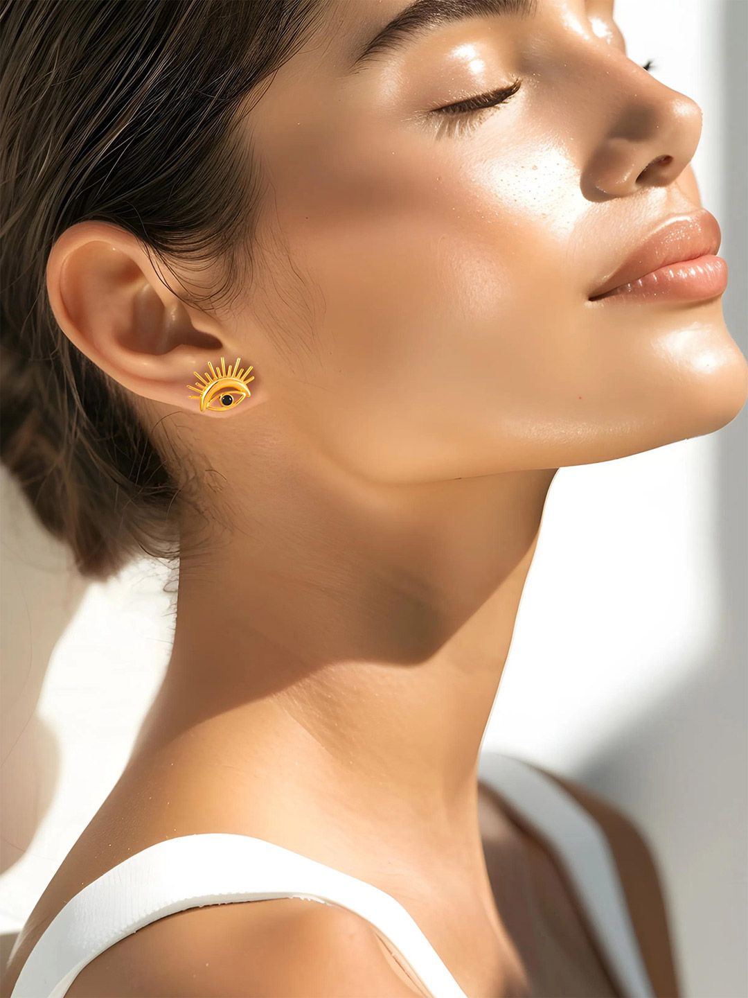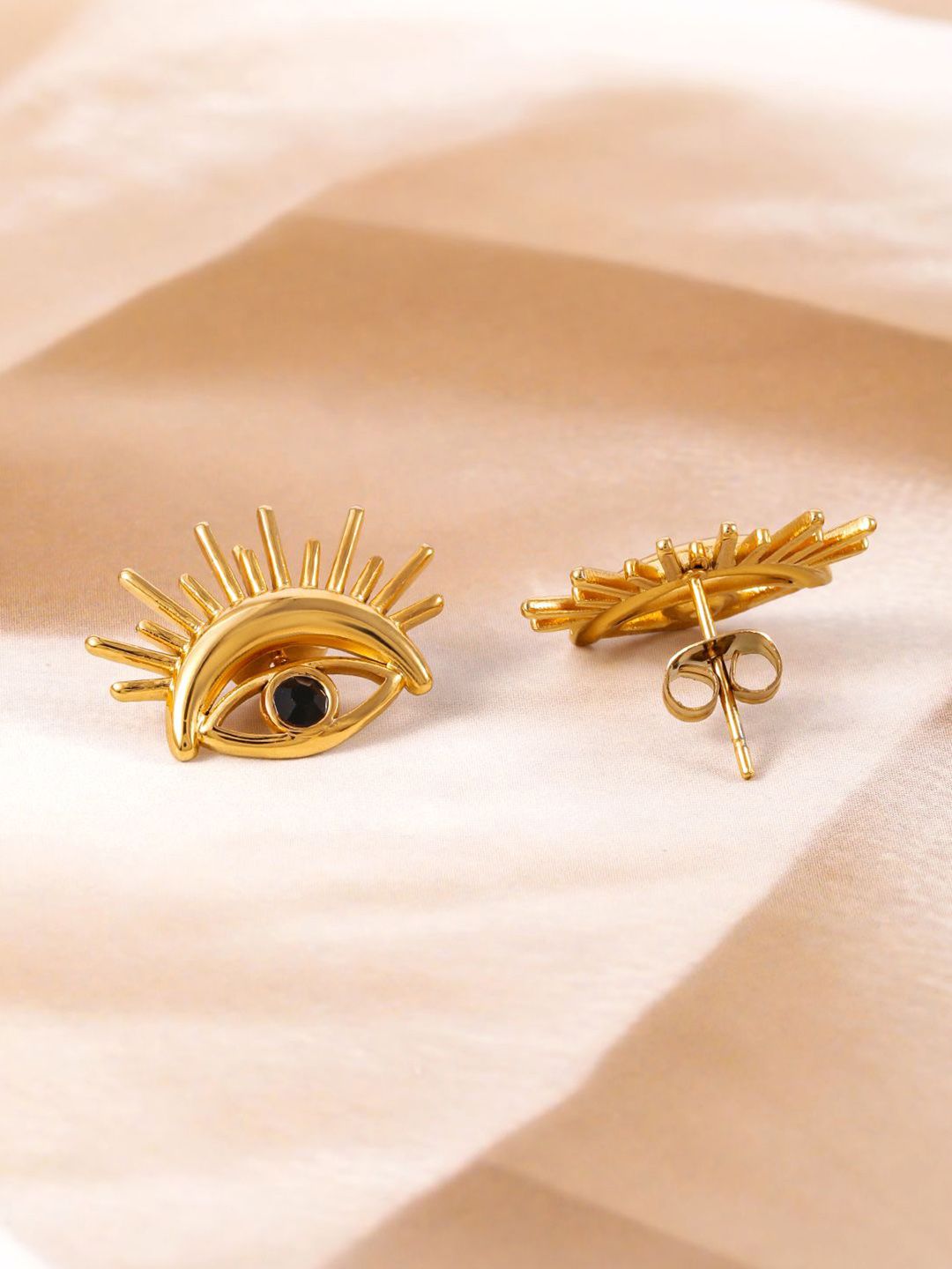 Dhiyona RJ 18K Gold Plated Stainless Steel Tarnish-Free Waterproof Demi-Fine Evil Eye Studs