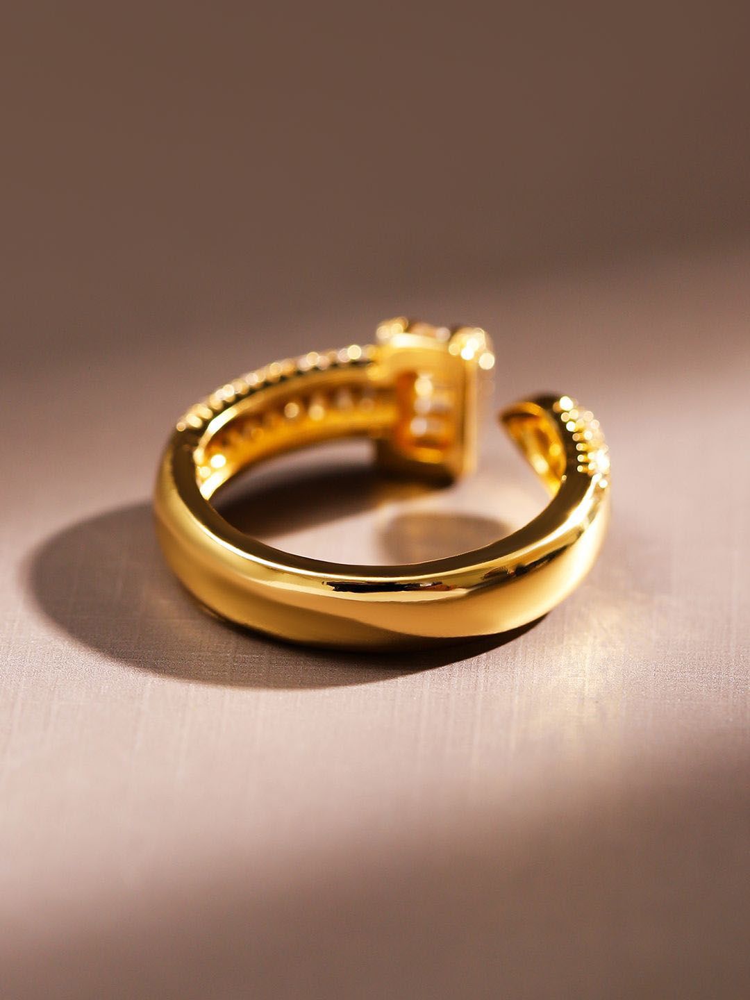 Dhiyona RJ 18K Gold Plated White Cubic Zirconia Studded Demi Fine Openable Adjustable Ring