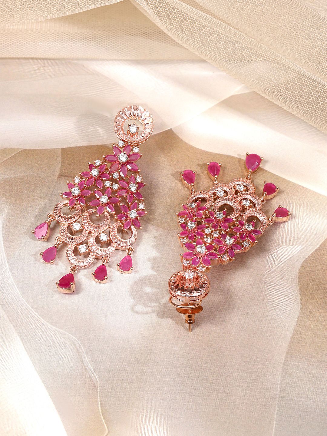 Dhiyona RJ 18K Rose Gold-Plated Cubic Zirconia Studded Floral Shaped Drop Earrings
