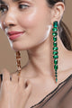 Dhiyona RJ Women's 18KT Gold Plated Emerald Studded Glamorous Shoulder Duster Drop Earrings