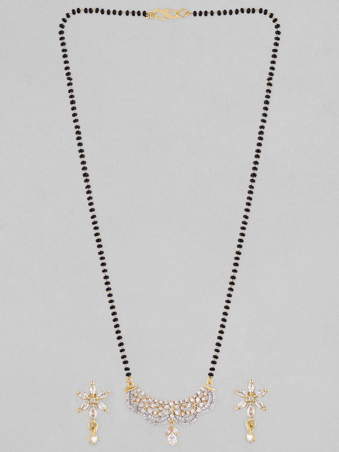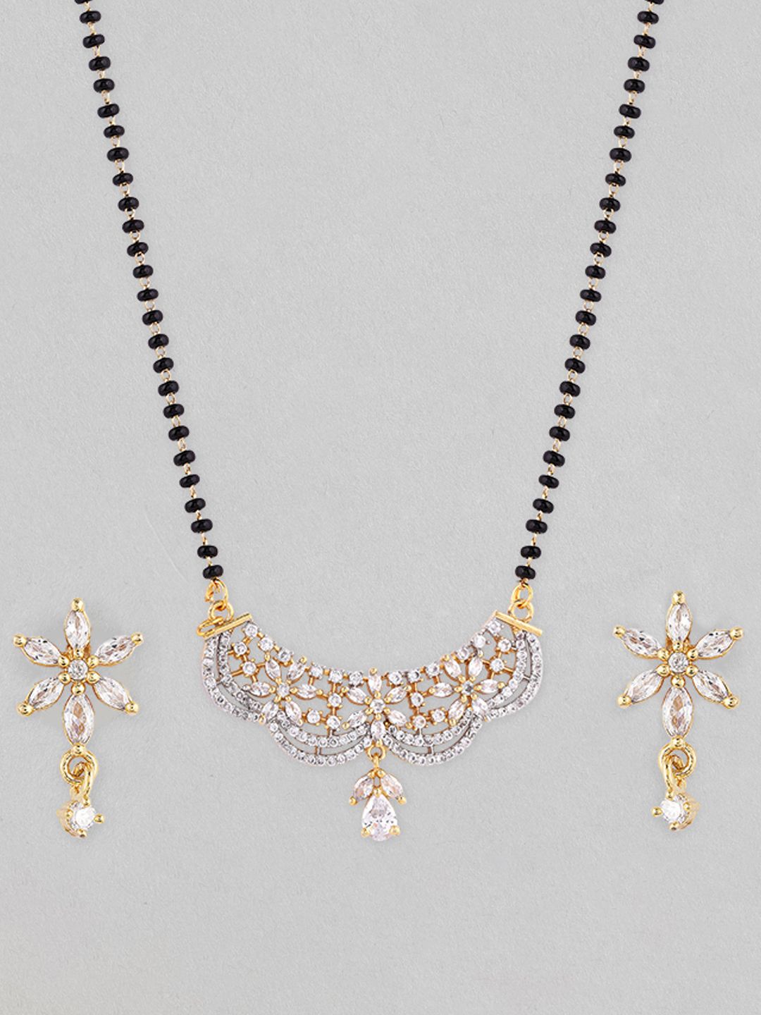 Dhiyona RJ 22K Gold-Plated AD & Cubic Zirconia Studded Black Beaded Floral Mangalsutra Set