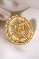 22K Gold-plated Adjustable finger ring, has white artificial beaded and elephant charm details