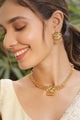 Dhiyona RJ 22K Gold-Plated Green Stone & Gold Beaded Peacock Design Traditional Necklace Set
