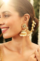 Dhiyona RJ 22K Gold Plated Kundan Crystal Kan Chain Earrings with Pearls & Green Enamel Detail